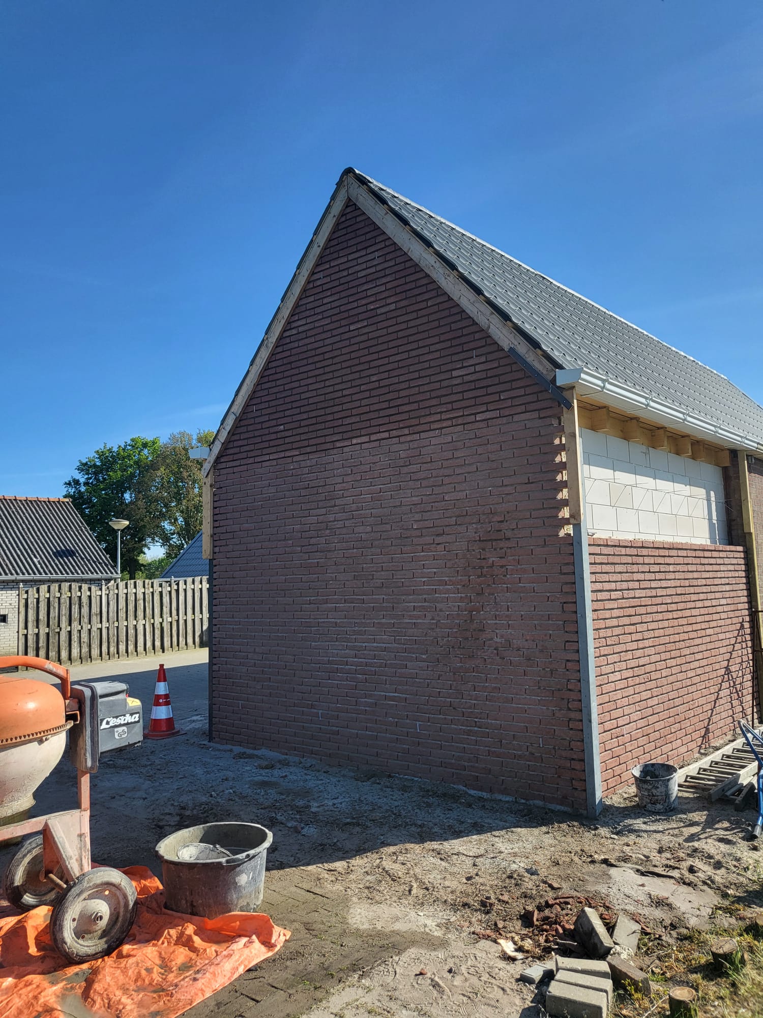 Aanbouw van een schuur in Oud Lutten